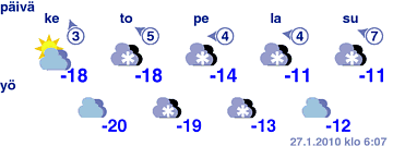 Tuorein säähavainto: 27.1.2010 8:00 Suomen aikaa Lämpötila -30,6 °C!!