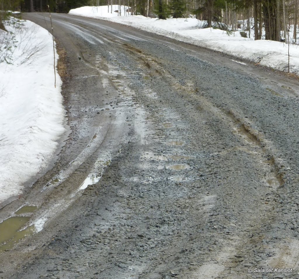 Nyt on kuitenkin viisainta pitää taukoa käynneissä, että tiet ehtivät kuivahtaa kunnolla. Turhaa mennä rikkomaan kulkupeliään. Maasturi olisi nyt paikallaan!