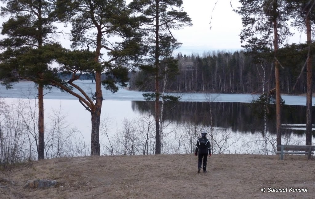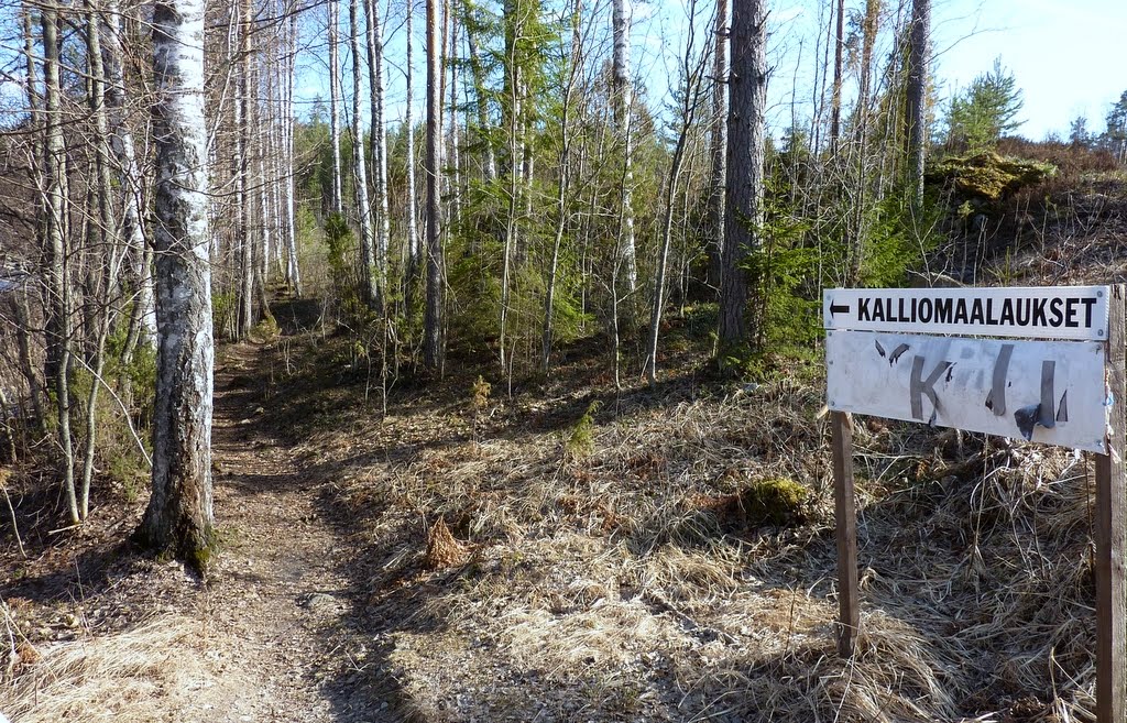 Kevään lämpimin päivä houkutteli retkelle. Aurinko paistoi, ja lämmitti ilman ”huikeaan” +14*C:een! Mitä lie virallinen lämpömittari näyttää, mutta autonmittarista tuollainen lukema vilahti. Kt 62:n risteyksestä on Astuvansalmen luontopolun alkuun tasan 39km, Ristiinan kautta. Suurlahdentien varressa on P-paikka, josta polku kalliomaalauksille lähtee.