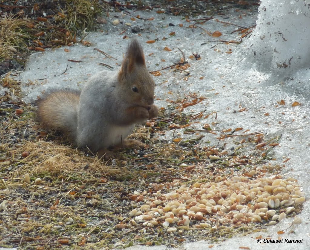 Tänään aamulla Ässä kehotti katsomaan oikeanpuoleisen omenapuun juurelle. Mikä se siellä? Rusakko per syömässä ruohoa! Meidän pihalla! Itsemurhaako se hautoo? Nopeasti sitten säikäytin otuksen matkoihinsa. Sen ei kyllä tarvitsisi oppia ruokailemaan meidän pihalla. Mutta eipä aikaakaan, kun huomasin: