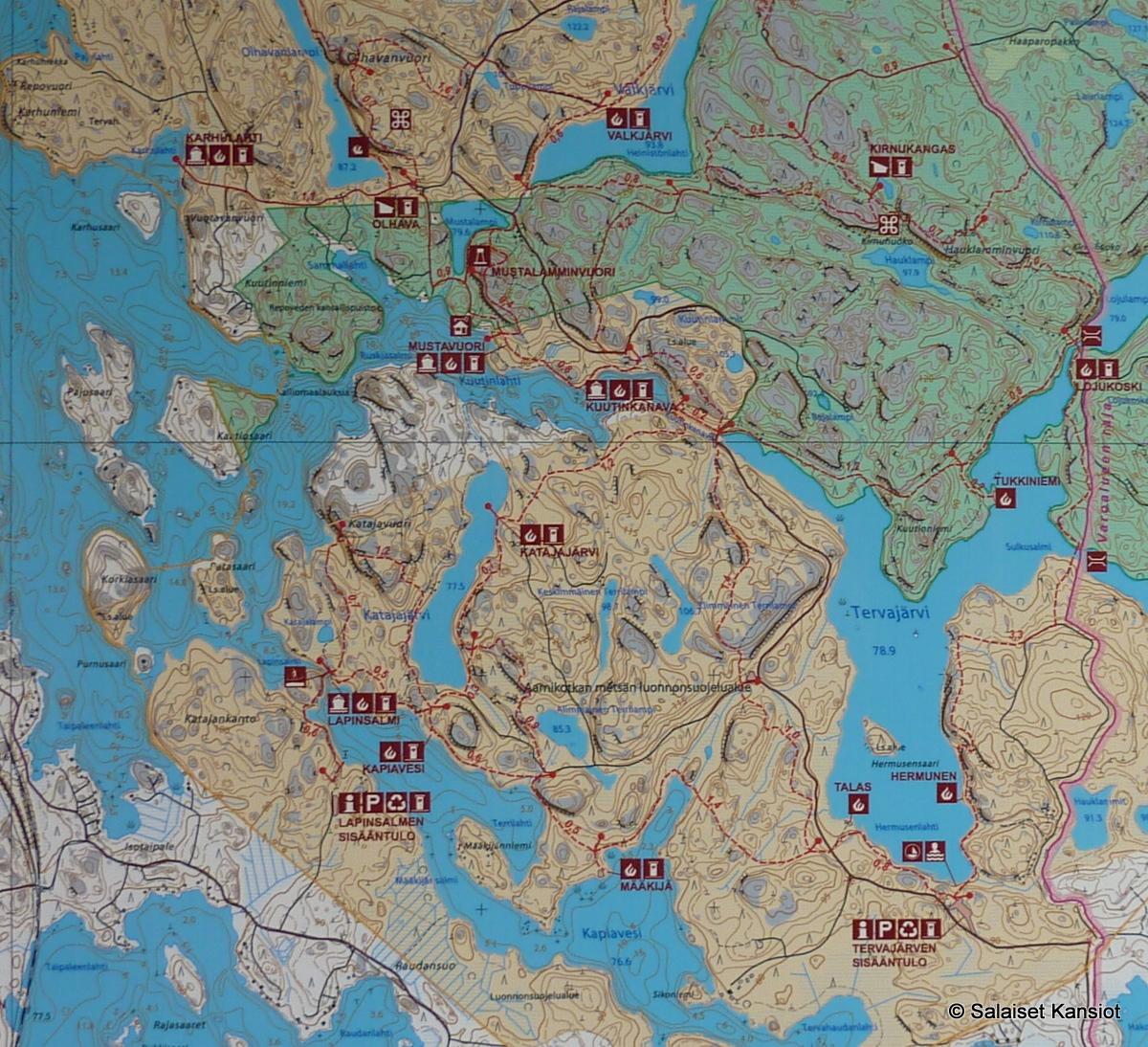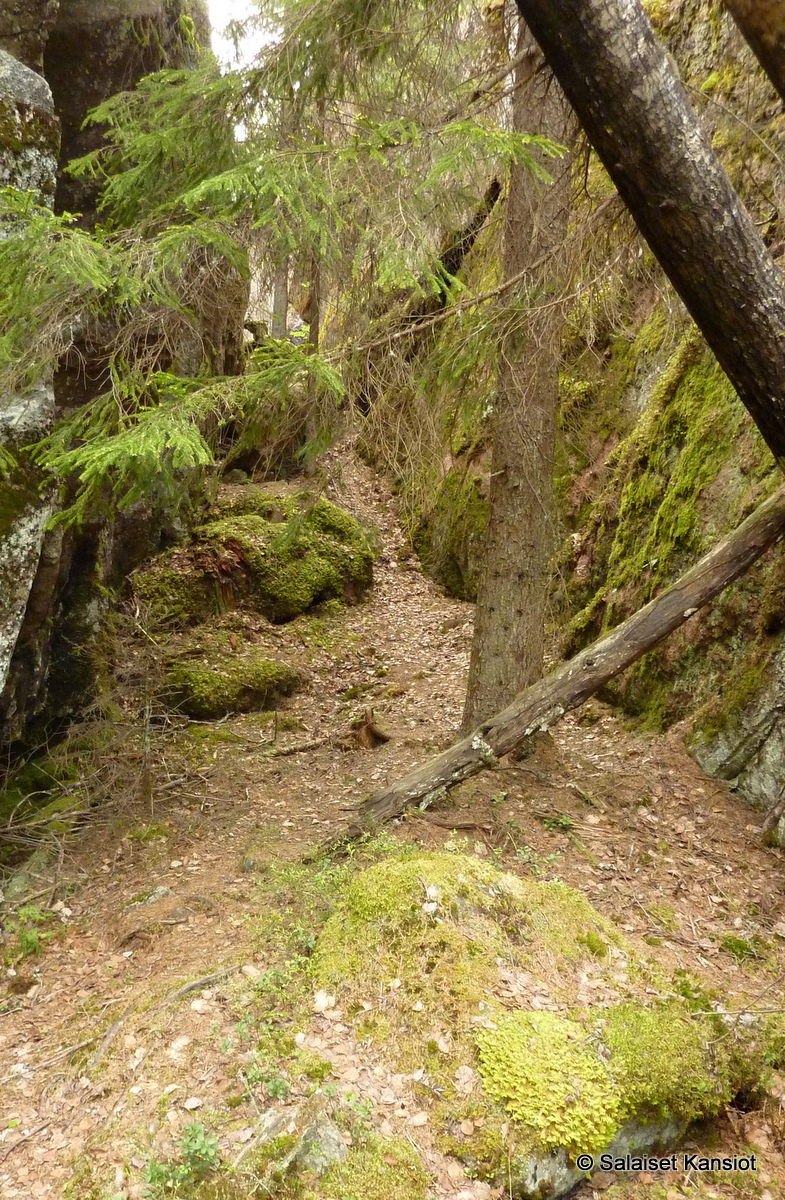Valitsimme onkalon ennen levähdystä. Eipä sillä toisaalta olisi ollut väliä, koska kyseessä on sellainen ”ympäripolku”. Ylhäällä olisi ollut huonokuntoinen tulipaikka lahonneilla penkeillä.
