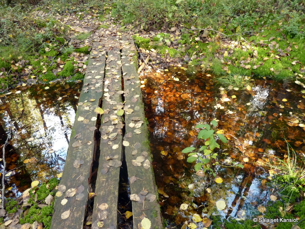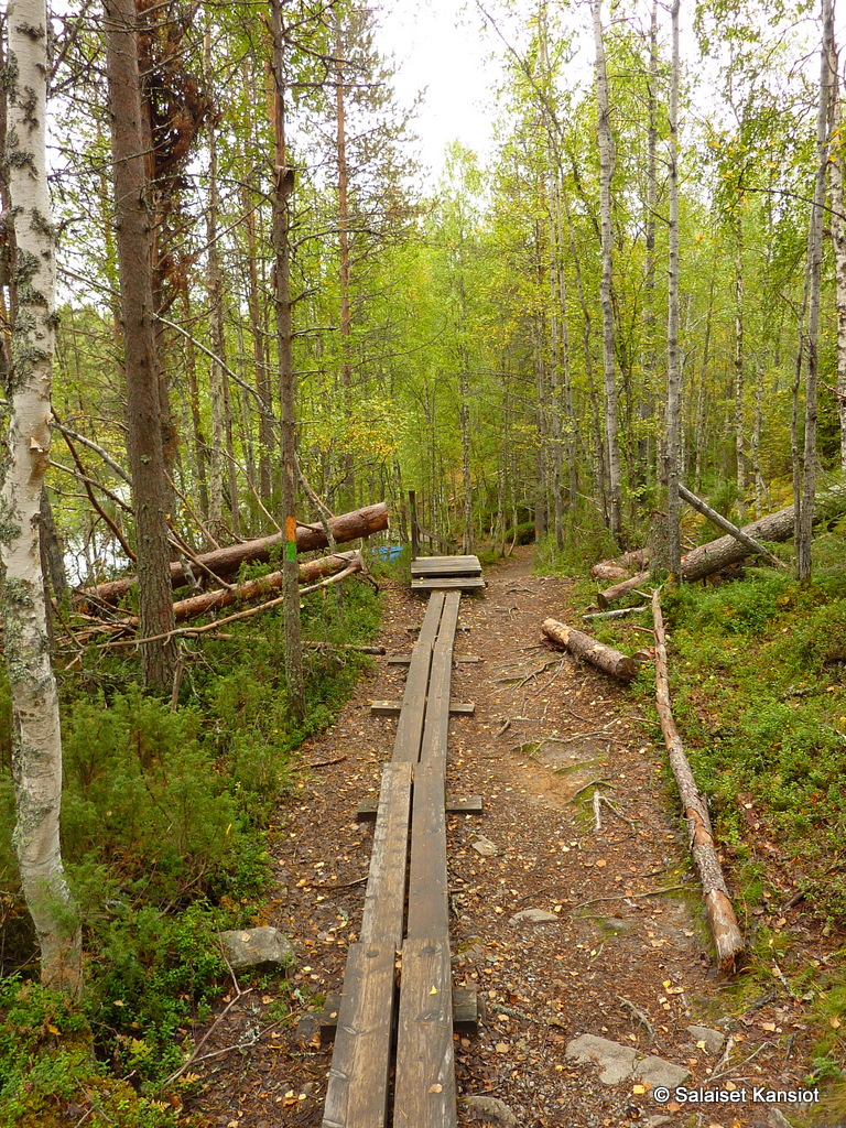 Polku-ura oli lähes olematon. Jos täällä on joskus pitkospuita ollut, niin niistä ei enää kyllä ollut mitään jäljellä. Nykykunnossaan voisi sanoa, että paikkalla käynti on jopa vaarallista.