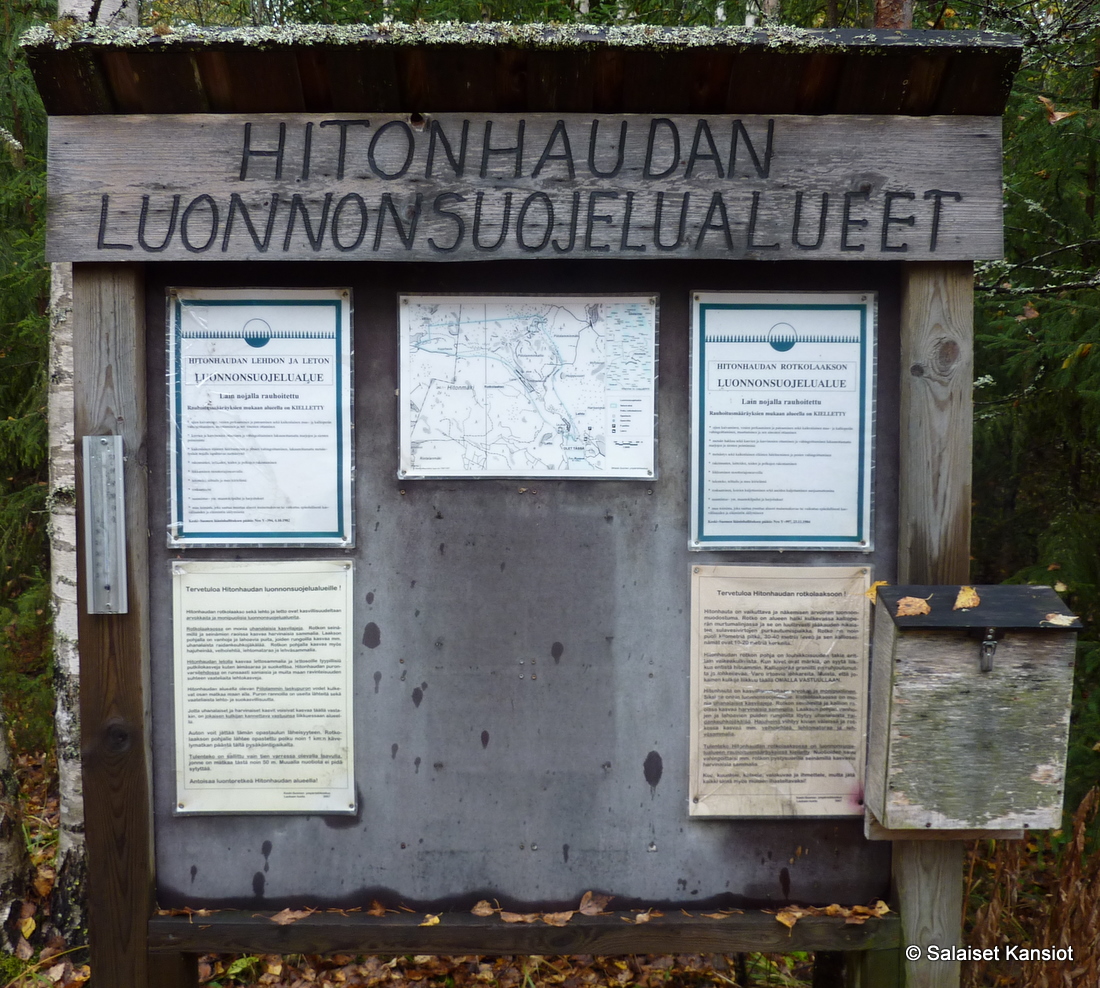 Hitonhauta on vaikuttava luonnonmuodostuma, sekä geologiselta että maisemalliselta arvoltaan hyvin merkittävä. Muodostuma on 30 – 40 metriä leveä ja sen jyrkänteiset, runsaan rakoilun lohkomat kallioseinämät ovat 10 – 20 metriä korkeita. Jyrkistä seinämistä, huuhtoutuneesta maaperästä ja pyöristyneistä kaakkoispuolen kivistä sen on päätelty olleen jääkauden sulamisvesivirtojen purkautumispaikka. Hitonhauta on kasvillisuudeltaan arvokas ja monipuolinen. Monet uhanalaiset ja harvinaiset kasvit sekä sammalet viihtyvät alueella. Hitonhauta ympäristöineen kuuluu Natura 2000 -verkostoon. Hitonhaudan luonto-opasvihkosta voi lainata Laukaan kirjastosta tai kunnanvirastosta.