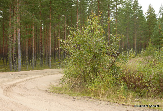 Hiekkatietä kurvaillessamme kyltti oli hiekkakuopparisteyksen kohdalla jo ”vähän” piilossa.