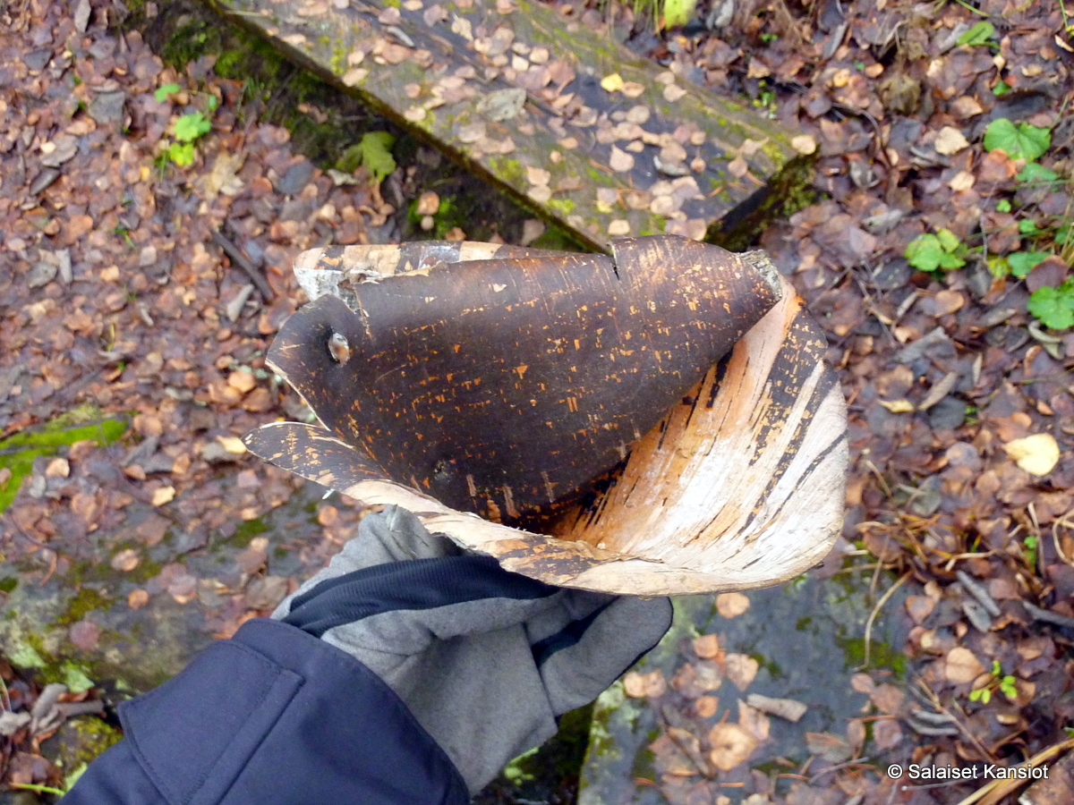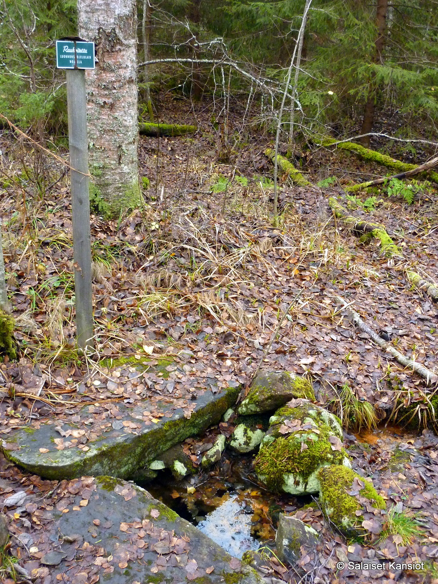 Pinnalle oli kerääntynyt paksu kerros kellertävää humusta, joka sai lähteen näyttämään vähemmän houkuttelevalta. Lähteen terveysvaikutteet jäävät nyt kokematta. Jospa seuraavalla kerralla sitten kokeilisi makunautintoa? Oranssinensävy paljastaa, että lähteen vesi on varmasti rautapitoista.