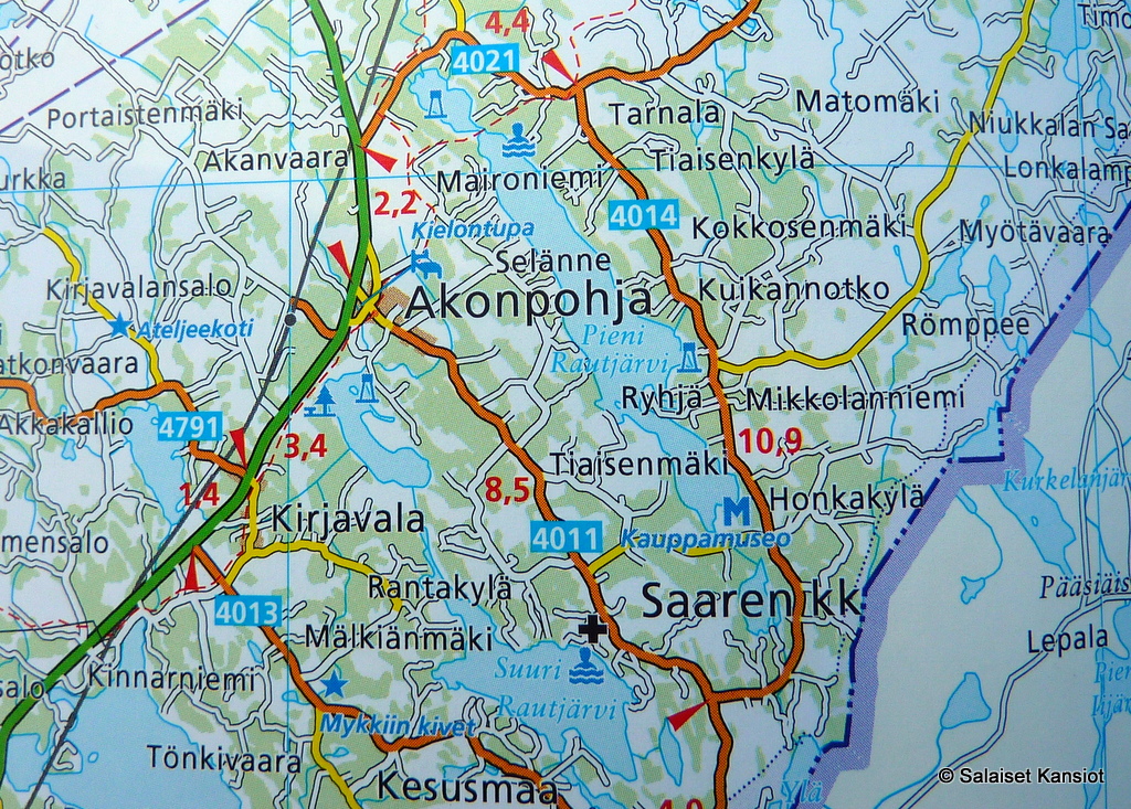 Ennen Siiskosta ohitimme mopoilijan (LAL-??), joka täysin tyynesti ajeli hieman alle 80km/h tien pientareella. Mieleenpainuvaksi tämän tekee poliisi, kanssamme samassa pienessä jonossa, joka ei tehnyt asialle yhtään mitään, vaan antoi urhean mopoilijan jatkaa uhkarohkeaa matkaa. Poliisit kääntyivät edestämme Siiskosen leipomolle kahville. Siinä oli sitä Siiskosen leipomon vetovoimaa. Kahvi ja munkki (1,50€) voittaa helposti lainvalvojan mopopojan ojentamisvelvollisuudet.