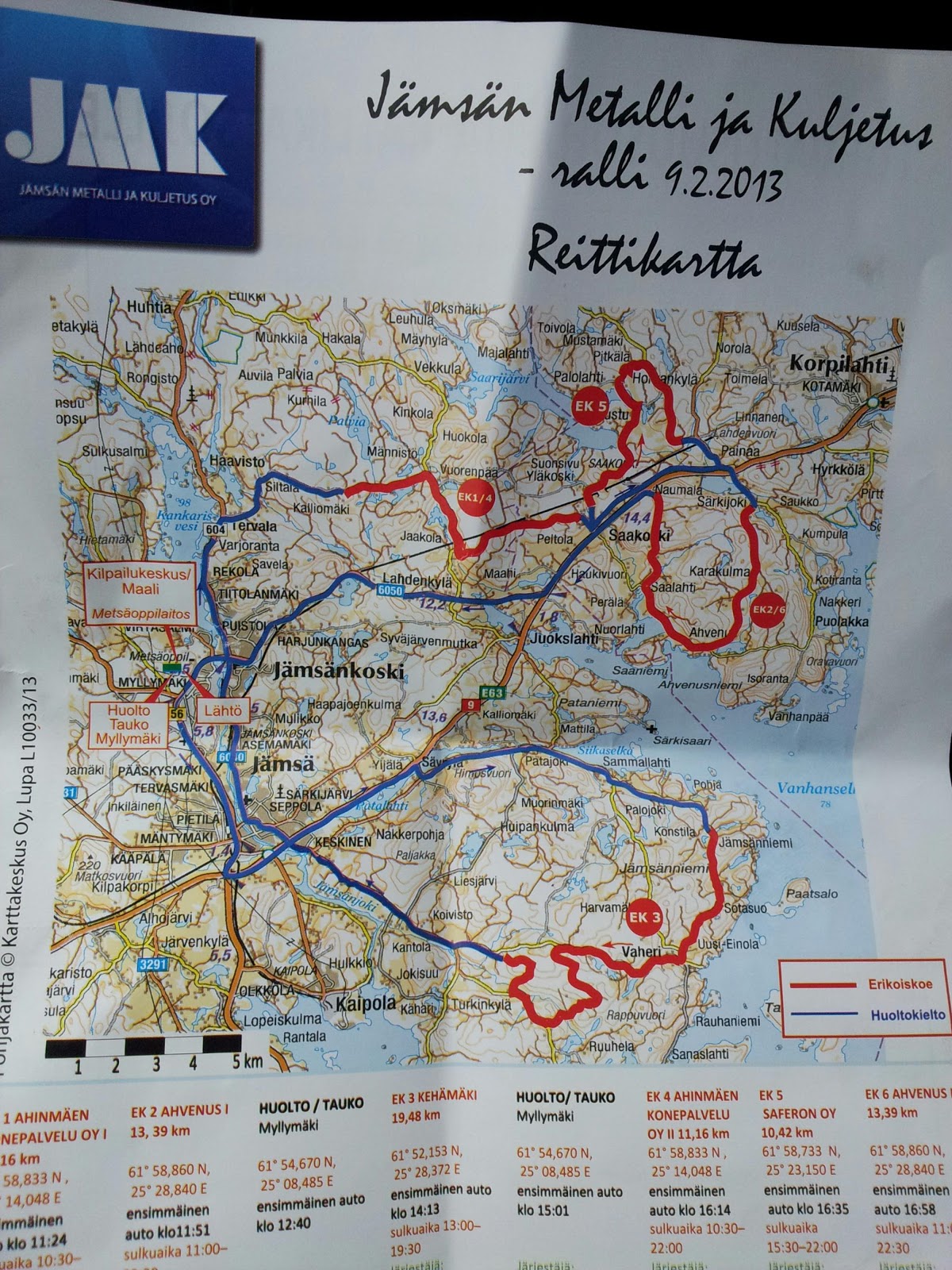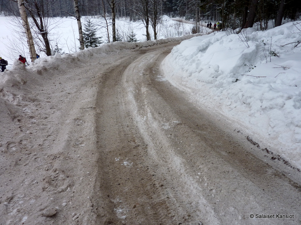 Tämä EK (nopeuskilpailun erikoiskoe) pitäisi ajaa vielä toiseen kertaan. Totesimme tunnin odottamisen olevan turhaa ja jätimme tylsän raideajon omaan arvoonsa.