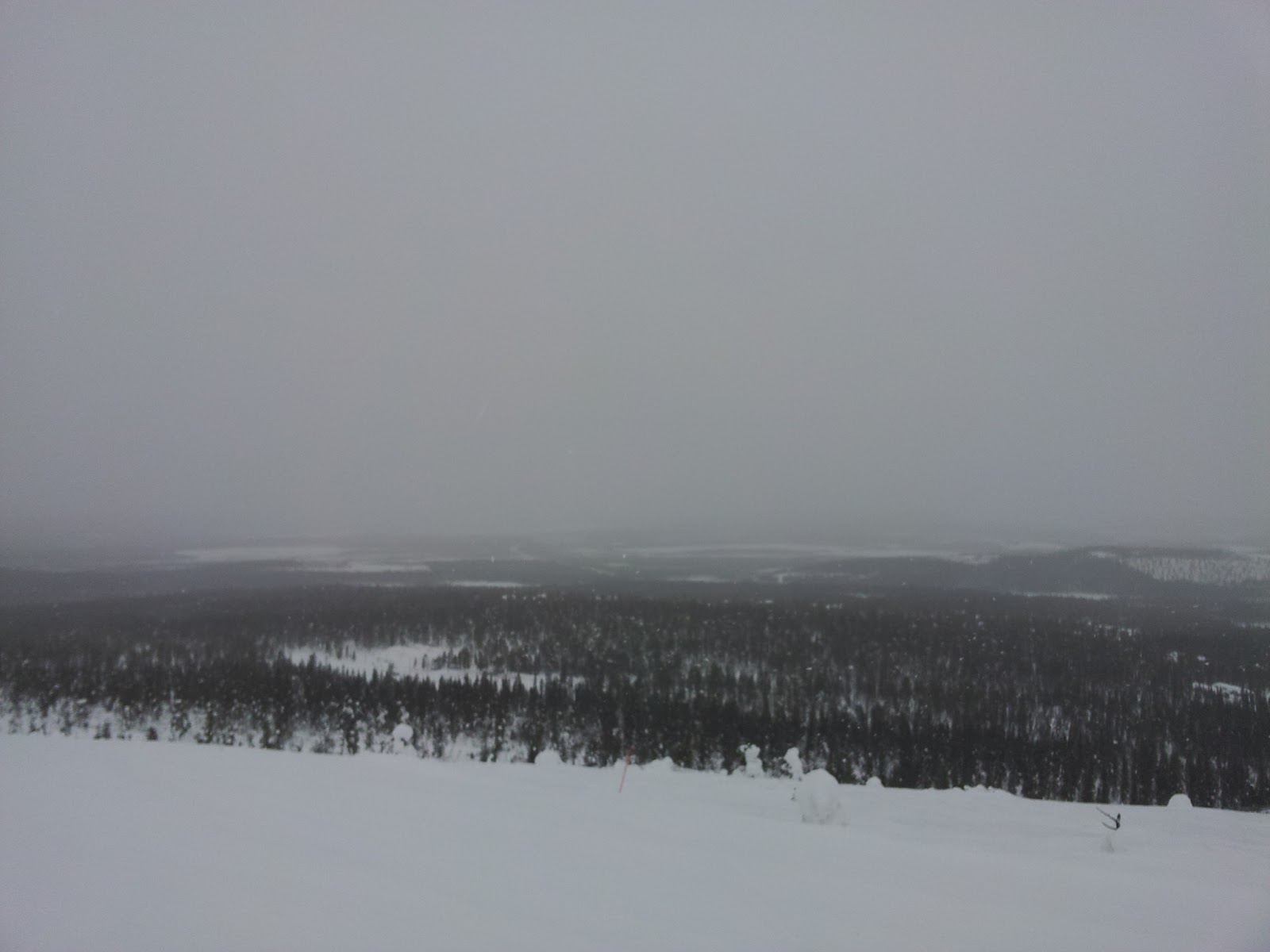 Upeat maisemat, upeat maisemat, upeat maisemat,….. Ainoana, hyvin pienenä, miinuksena jalkojen täydellinen koomatila, joka ei sietänyt aavistuksen kovalla rinteellä vauhdikkaita kurvailuja reilua tuntia kauempaa. Huomiseksi ennustettu lumimyrsky tulee, toisaalta, ihan sopivasti, että jalkaparoille jää yksi huilipäivä.