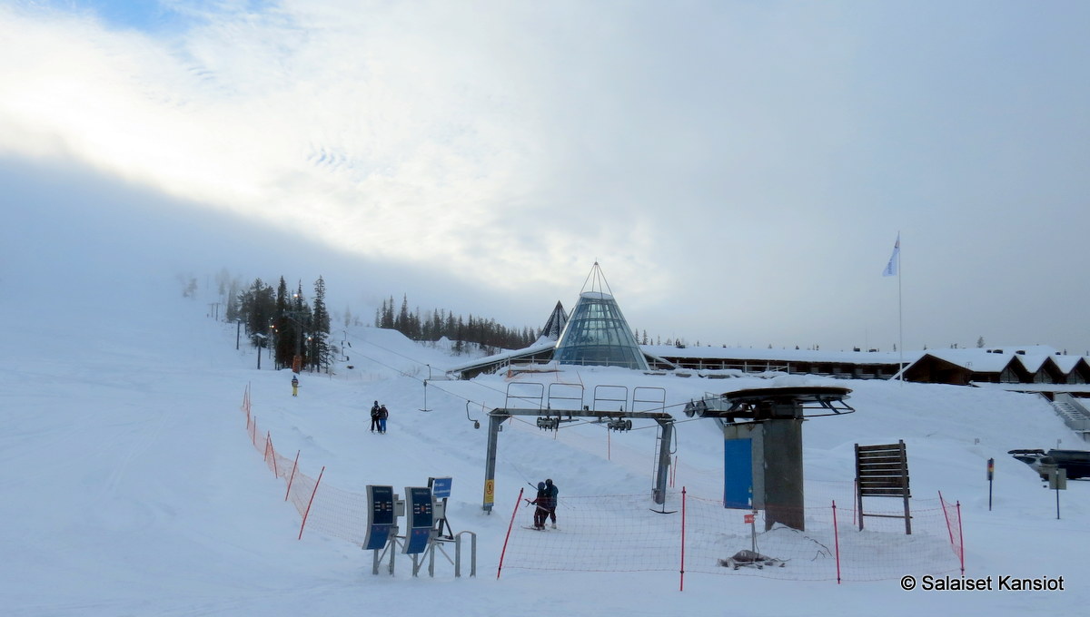 Lapin tuntureiden kova tuuli sulki Leviltä (ainakin) kaksi näkemäämme rinnettä.