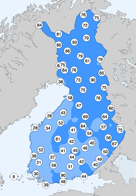 Niinpä niin. Koko päivän, siihen asti kun poistuimme laskettelukeskuksesta, paistoi aurinko. Emme oikeastaan ehtineet edes pois koko lomakylän alueelta, kun aurinko meni pilveen. Ajeltuamme viitisen kilometriä Kuopioon päin koko taivas oli aivan pilvessä. Tuo viimeinen ”järkyttävä” lumisade alkoi vasta ihan viimeisillä kyydeillä. Eipä siinä enää juuri valot auttaneet. Kelien suhteen meillä oli aika hyvä tuuri!
