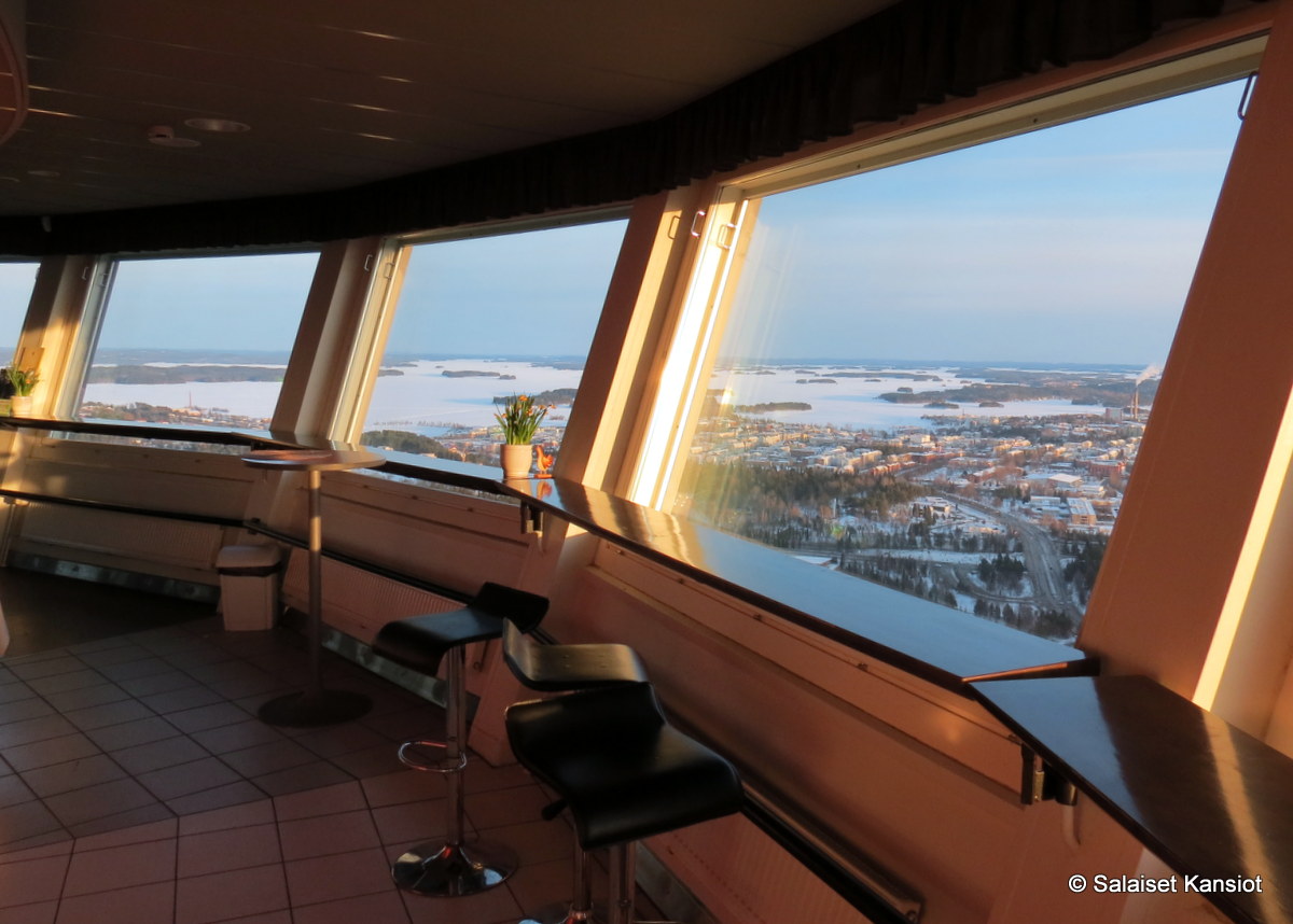 Tuonne ylempien ikkunoiden taakse iltamaisemia ihmettelemään.