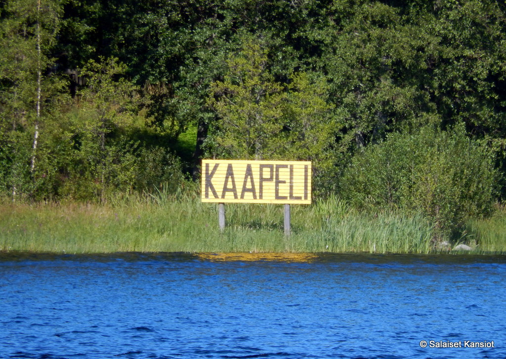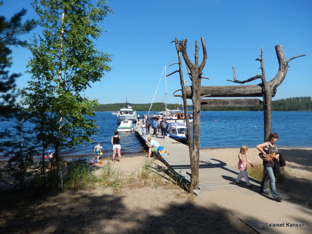 Saareen saavuttiin komean kyltin alta.