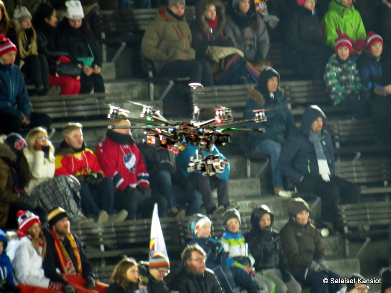 Kiva lelu, eli helikopterikamera, pörräsi pelin aikana ympäri stadionia.