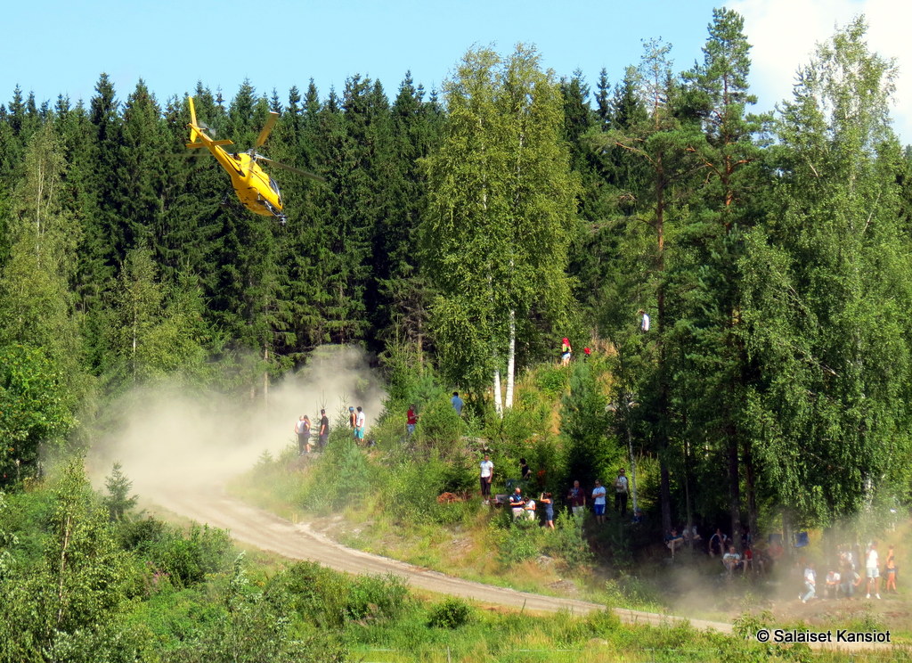 Toi kamerakopterikuski oli kyllä aika taitava lentäjä. Tuosta välistä se lensi auton perään vielä hyppysuoran alkuun asti, ja plasi aina takaisin. Kopteri kuvasi kaikki WRC:n kärkiautot.