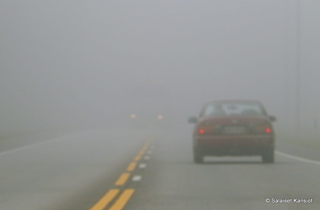 Muista sytyttää ajovalot sumussa