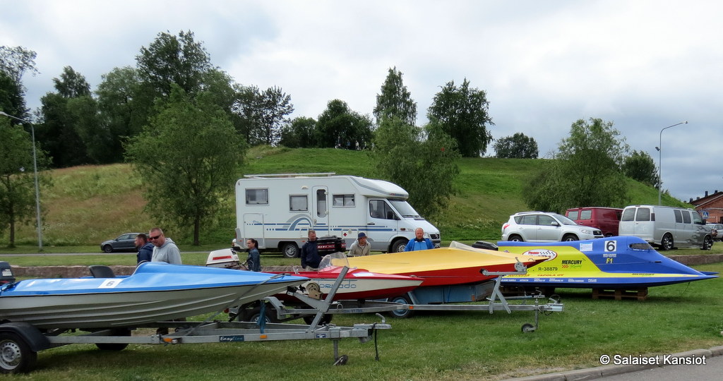 Kippaarimme Virsu on jo paatissa, Jusu virittelee pelastusliivejä, ja miä kuvan tällä puolen.
