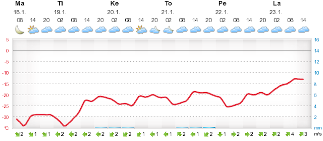 talvipuolisko, jolloin aurinko pysyttelee lähellä horisonttia.