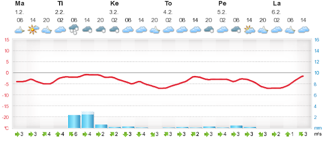 Mukavaa on, että Leville on maanantaiksi luvattu varsin raikasta ja aurinkoista keliä! 😊