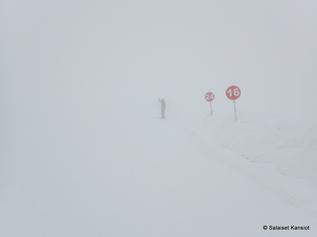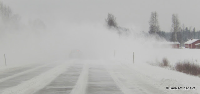 Erittäin sakeaa lumipöllyä viimeiset 100km