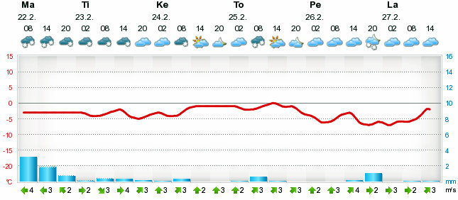 Mukavaa on, että Leville on maanantaiksi luvattu varsin raikasta ja aurinkoista keliä! 😊