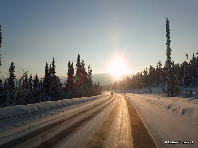 Upea kirkas taivas kesti vain Pallaksen tiehaaraan asti, mutta ei se sen hienoutta himmennä.