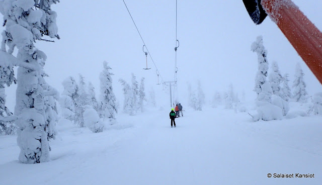 Alimpia rinteitä pystyi laskemaan suht koht huolettomasti, mutta ylempänä ei näkyvyyttä juurikaan ollut. Itseämme turhaa kiduttamatta saimme kuitenkin parissa päivässä kokoon noin 60km ihastelua ja mäenlaskua.