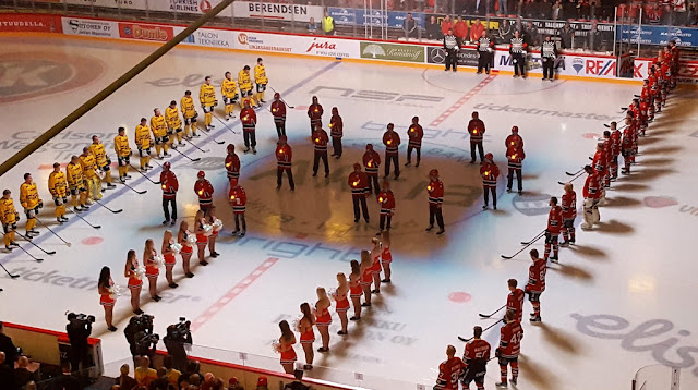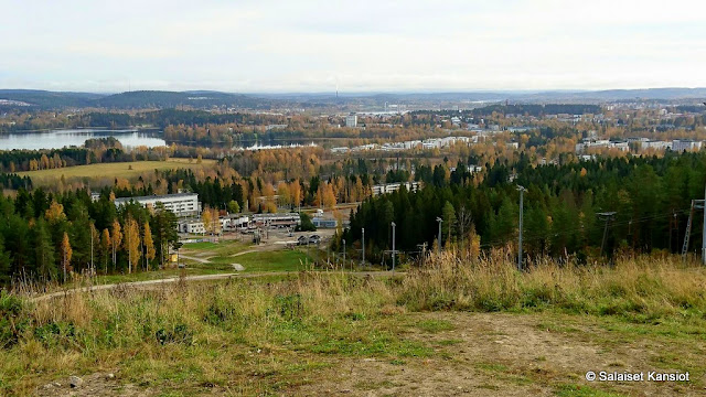 Raviradan katsomo näkyytakana, oikealla lipputankojen kohdalla on jäähalli.