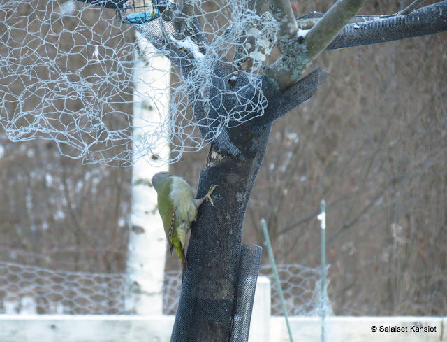 Talipötkö oli ”mystisesti” kadonnut kuusen oksalta. Ei näkynyt koko pötköä, eikä telinettä missään!