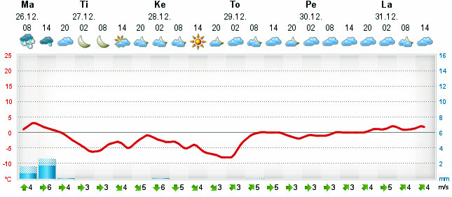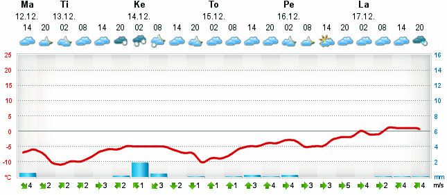 eteläisessäkään Suomessa keskipäivällä kuin alle seitsemän asteen