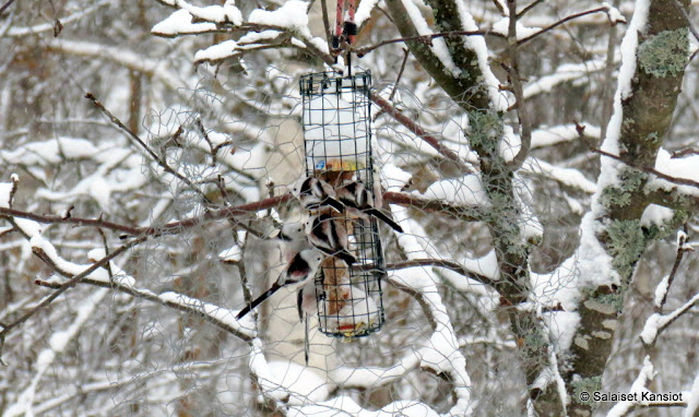 Lintujen ruokinta aloitettiin juuri ajoissa ennen ensilumia lokakuussa.