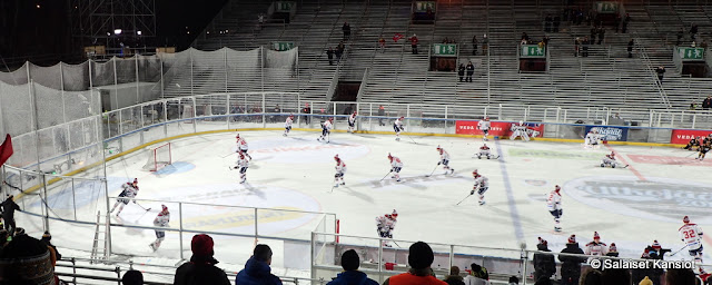 Olutalue ennen peliä, kuvattu katsomon ylimmältä kohdalta. Ei ollut vielä kova sutina päällä, mutta erätauoilla oli.