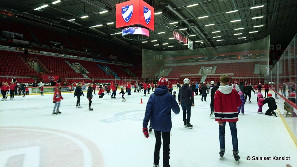 D-puolen ovet avataan ja jäälle pääsee luistelemaan. Jäävuoron jälkeen
