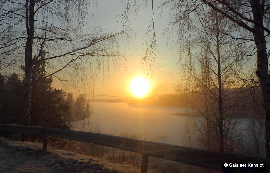 Vuoden 2016 ensimmäiset aurinkokuvat Kirkonvarkauden sillan parkkipaikalta.