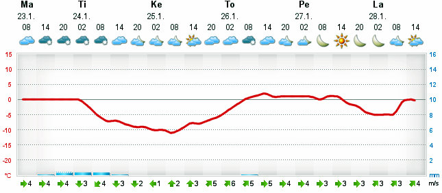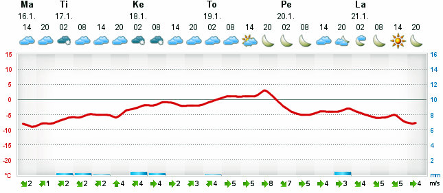 Keli oli yön aikana muuttunut täysin. Maanantain nollan vaiheilla ollut lumiräntätuhnukeli oli muuttunut tiistaiksi aurinkoiseksi ja raikkaaksi pakkasaamuksi. -14*C!