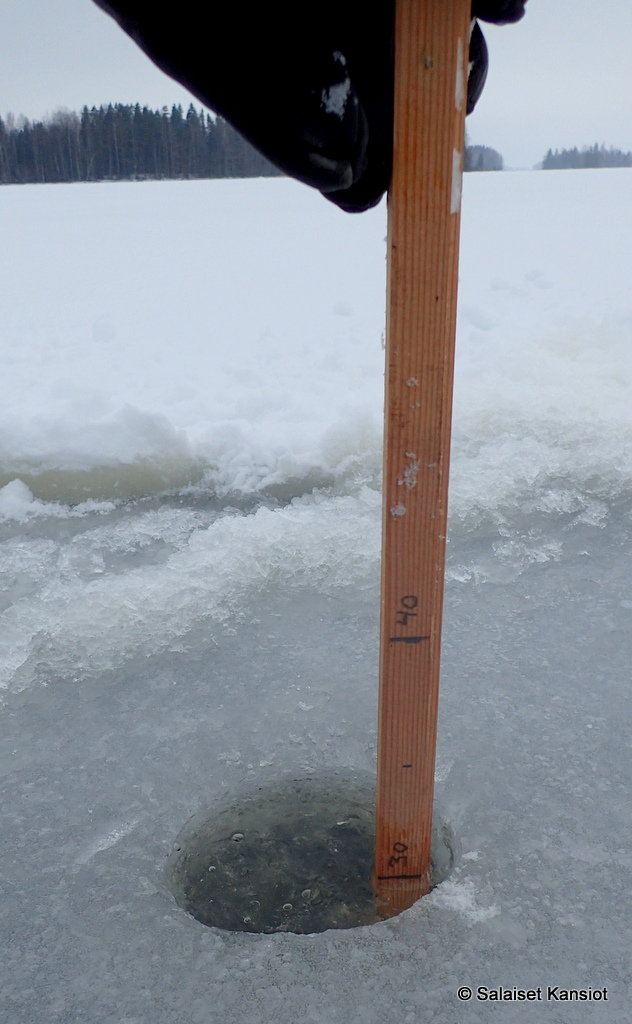 Erikoiset talviolosuhteet eivät ole kovinkaan paljon vaikuttaneet Kyyvedellä jään paksuuntumiseen.