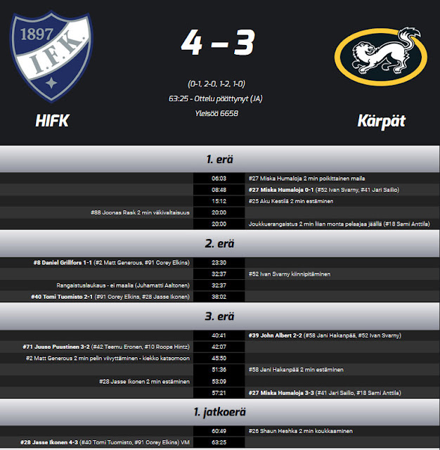 Peli päättyi jännittävien hetkien jälkeen jatkoajalla, varsin mukavaan tulokseen ja huikeaan tunnelmaan! Oli hieno ilta katsomossa ja kentällä!