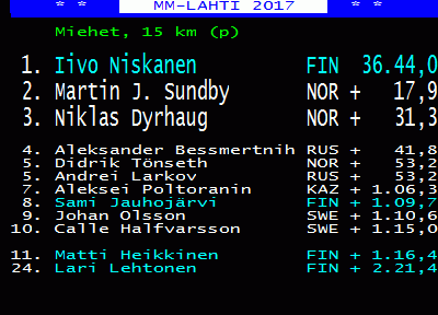 17:16 EK 20 Pihlajakoski 2 14,85 km