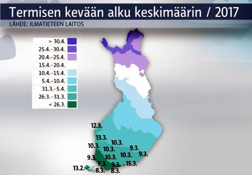 maaliskuun 15. päivää. Sen jälkeen kevät ei ole edennyt yhtään, selviää