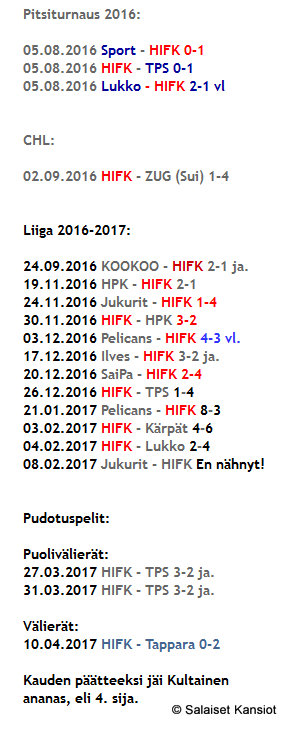 HIFKn kausi 2016-17 päättyi