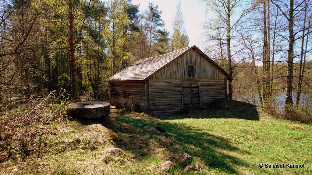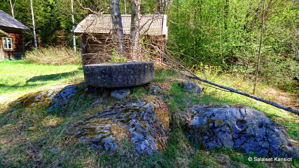 hirsirakennuksia. Kaksikiviparisen ratasmyllyn kivet ovat luonnonkiveä