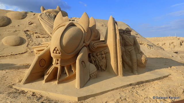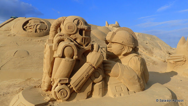 olla tietyn tyyppistä, veistamiseen soveltuvaa hiekkaa. Valmis työ