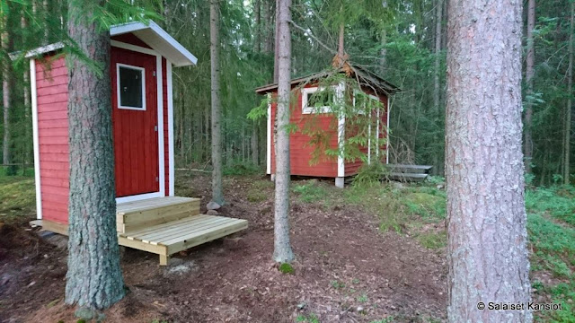 Mökin takapuolelta kaatui kaksi koivua, jotka olivat myös aivan liian lähellä mökkiä.