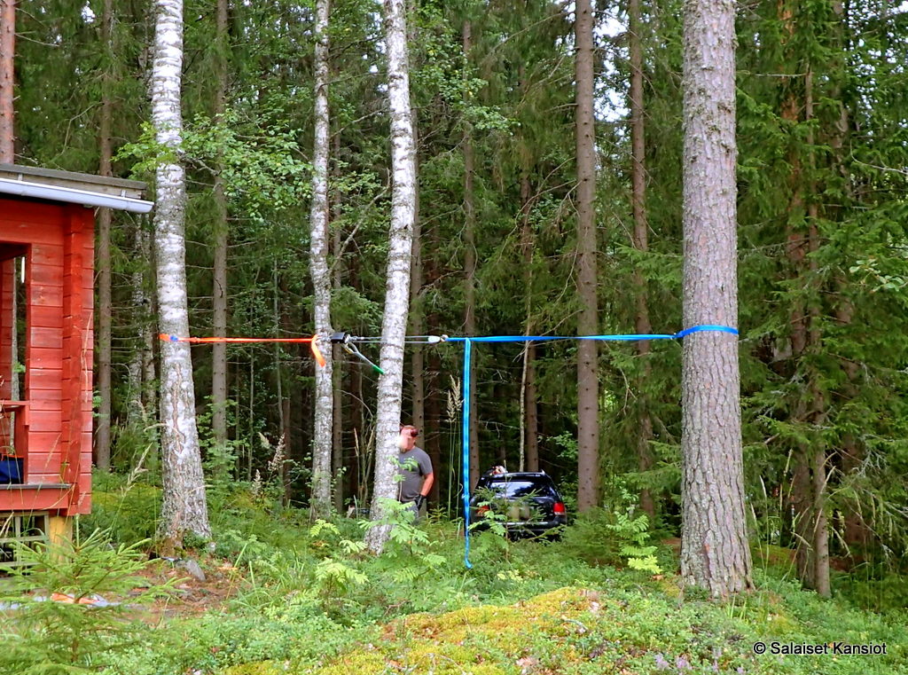 Jumppi hoiti työtä ammattilaisen ottein, ja vetoapua otettiin isommasta männystä.