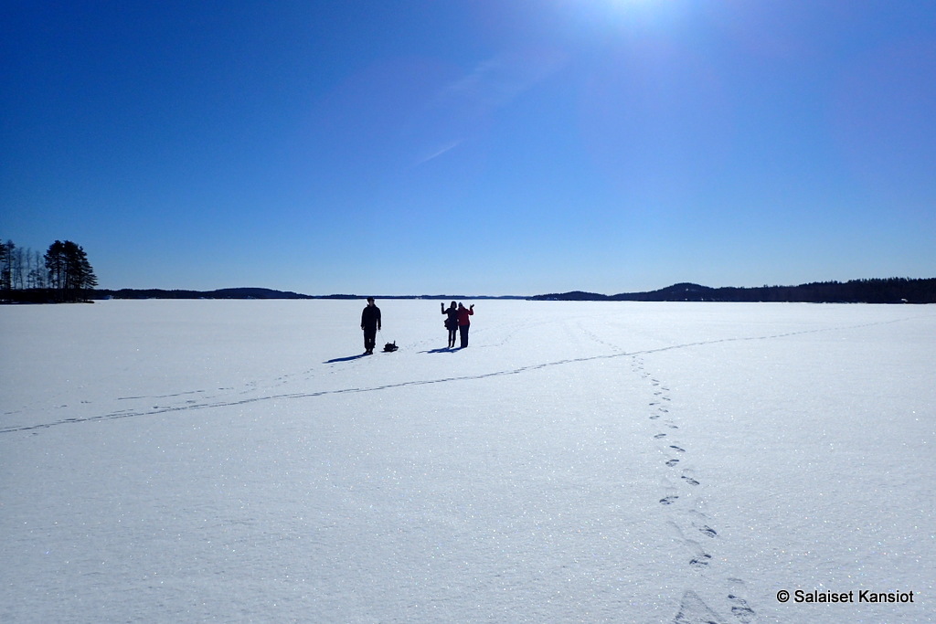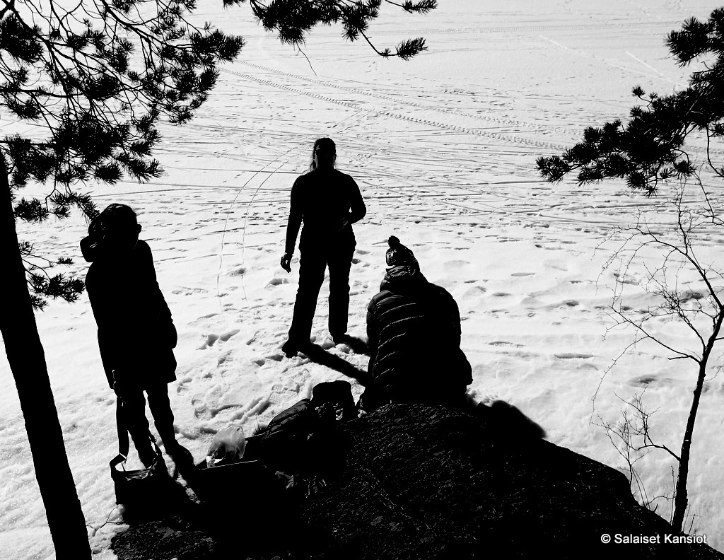 Meidän kanssa yhtäaikaa paikalla kävi kymmenkunta kävelijää ja hiihtelijää.