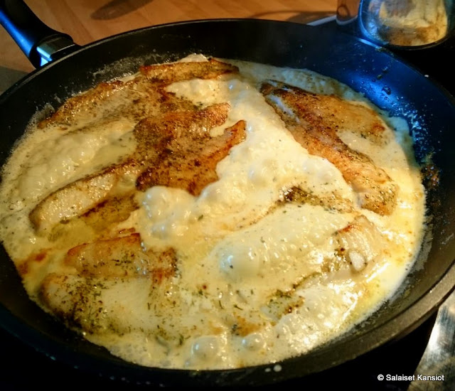 Ja siinähän ne kuhafileet kypsyvät paksussa kermassa.