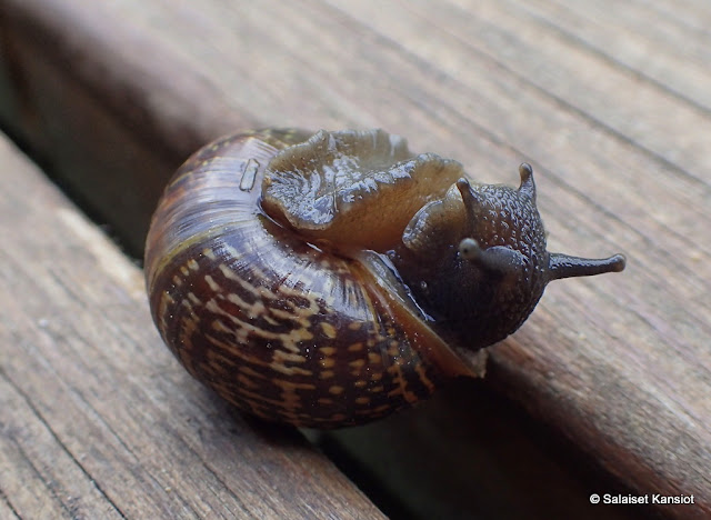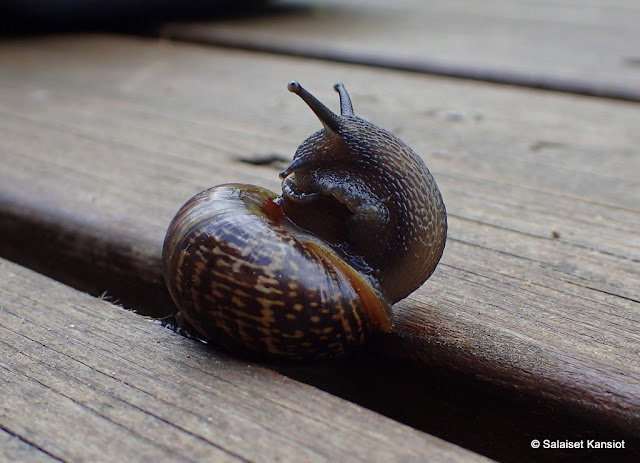 ovat liikkeellä öisin, keväästä alkusyksyyn. Kotilo talvehtii karikkeen