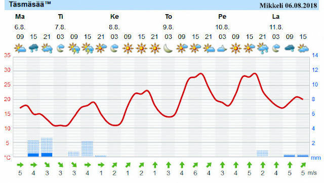 Eilen maanantaina Mikkeli oli Suomen lämpimin paikka 22.1°C