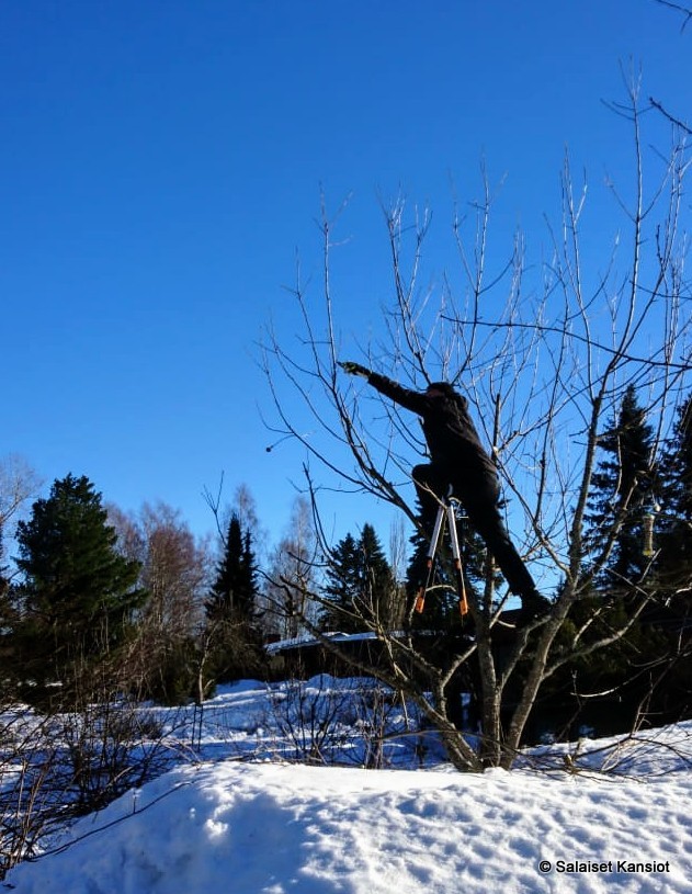 oksista. Seuraavaksi poistetaan latvuksen sisäosiin kasvavia oksia sekä