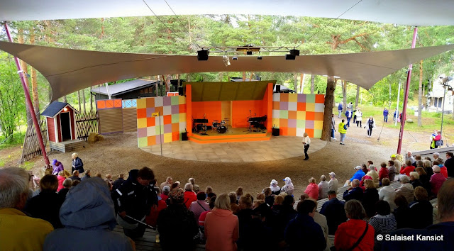 No, Odotin aika paljon tätä näytelmältä, mutta tämä olikin tehty Lappareiden melkoisen tuntemattomien laulujen sanoille, eikä näytelmä saanut minkäänlaisia naurupurskahduksia aikaan. Ehkä parissa kohtaa. Näytelmän loppussa tuli sitten rypäs suosituimpia ja tutuimpia lauluja pelastamaan tunnelmaa. Yleisö oli pääasiassa ”6-kympin ja kuoleman väliltä” ja näytti, ettei osalla ollut harmainta aavistustakaan mistä laulettiin. Jäyhää porukkaa, eikä sellaista yhteyttä esiintyjien ja katsojien välille syntynyt. Kunhan katseltiin. Hiukan jopa vaivaannutti. Hitsi.