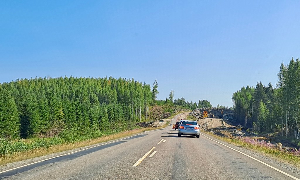 Maha täynnä ja mieli virkeänä kohti Kuhmoa. Reittivalintamme kulkee teemalla ”itärajan oikopolku”.